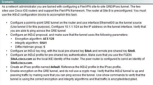 Configure a FlexVPN site-to-site GRE/IP sec tunnel.