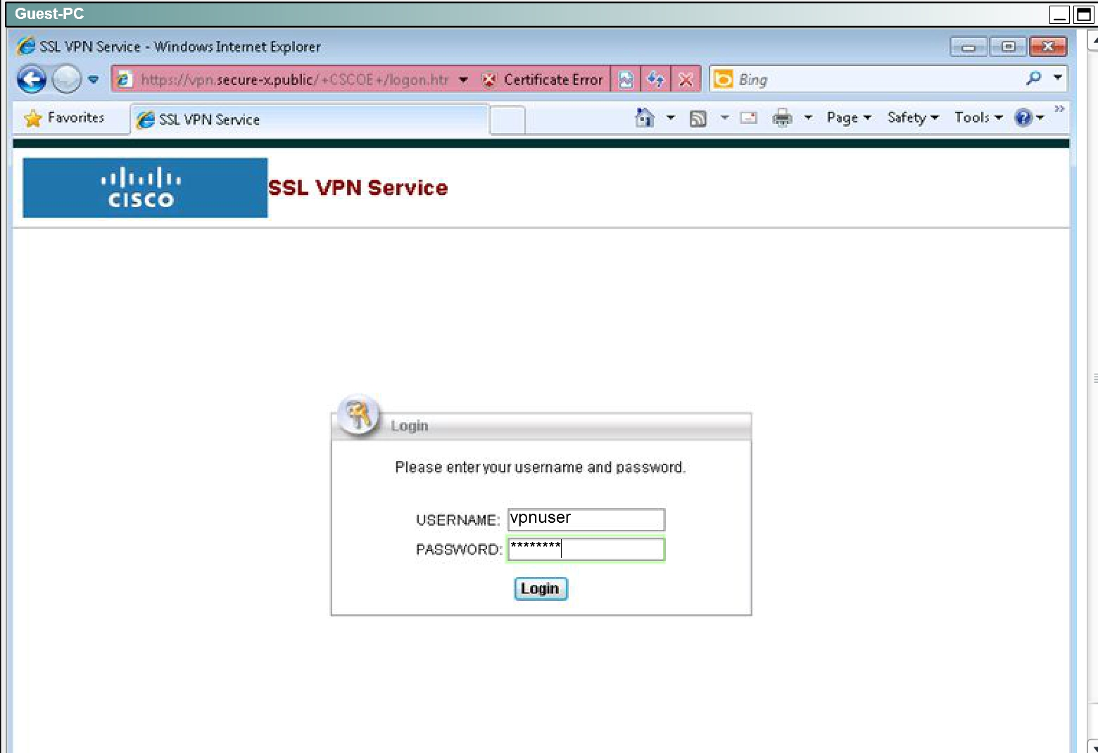 connection to the SSL VPN portal using address: https://vpn-secure-x.public