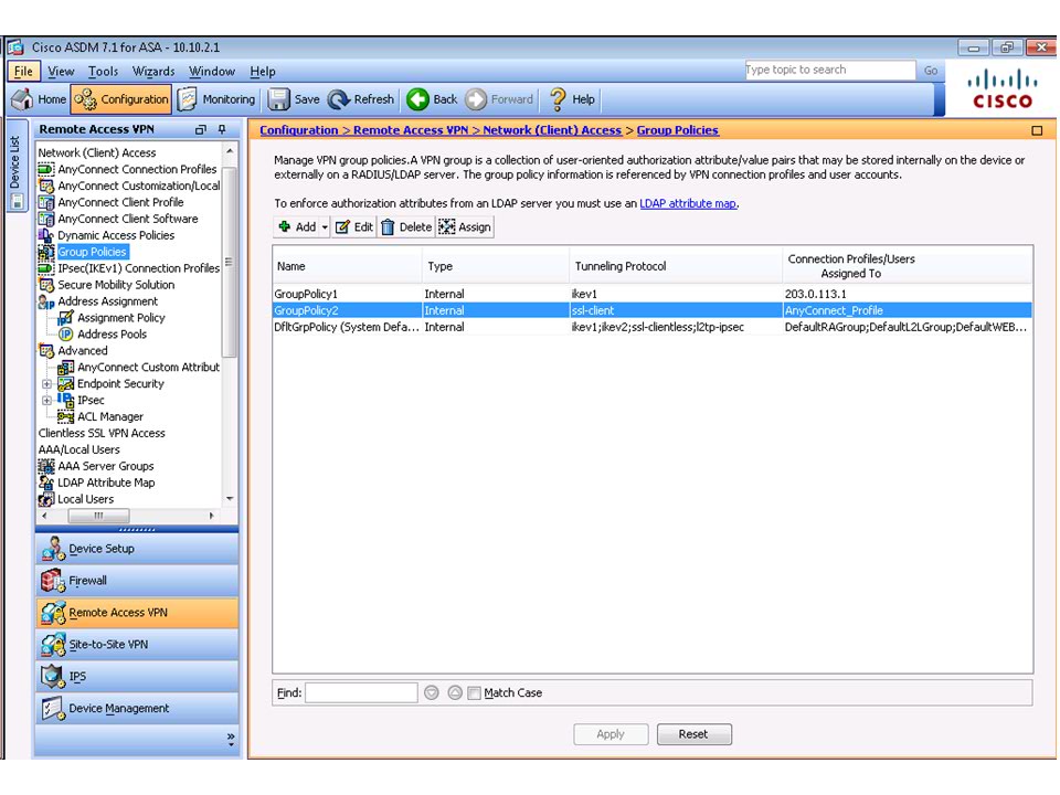 “AnyConnect Connection Profile as shown below:Then, clicking on the AnyConnect Profile at the bottom will bring you to the edit page shown