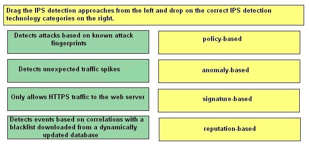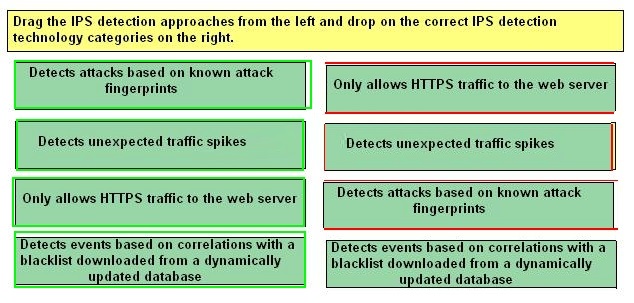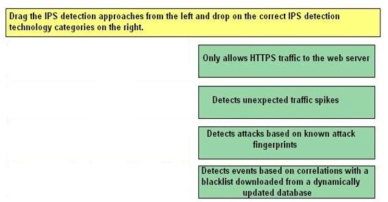 Drag the IPS detection approaches from the left and drop on the correct IPS detection technology categories on the right. DRAG DROPDrag the IPS detection approaches from the left and drop on the correct IPS detection technology categories on the right. DRAG DROPDrag the IPS detection approaches from the left and drop on the correct IPS detection technology categories on the right. Answer: Explanation: Show Hint ← Previous question Next question →