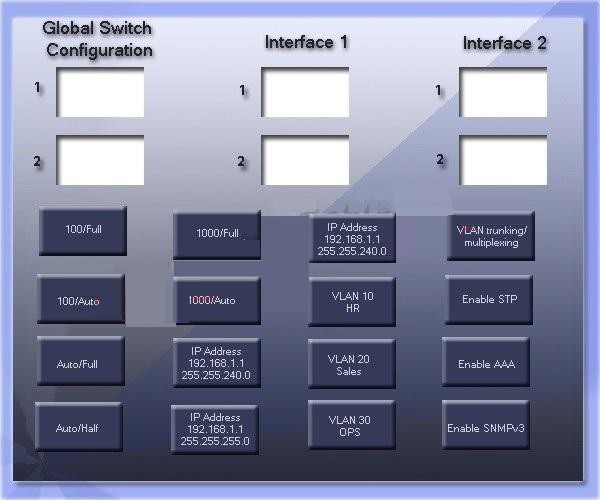 GigSwitch1 is currently configured with a speed of 100 and Duplex is set to Auto on all interfaces. Interface 2