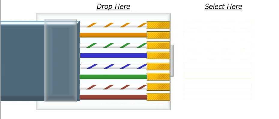 Build a T-658B Connection DRAG DROPBuild a T-658B ConnectionSelect and Place: DRAG DROPBuild a T-658B ConnectionSelect and Place: Answer: Explanation:Cat5/6 Cable Pinouts Show Hint ← Previous question Next question →