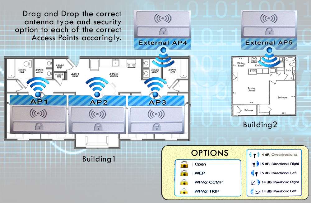 2. Restrict the wireless signal generated by the access points (AP’s) inside Building 1, so that it minimizes