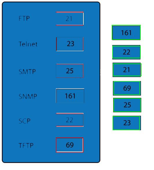 Drag and drop the correct protocol to its default port.