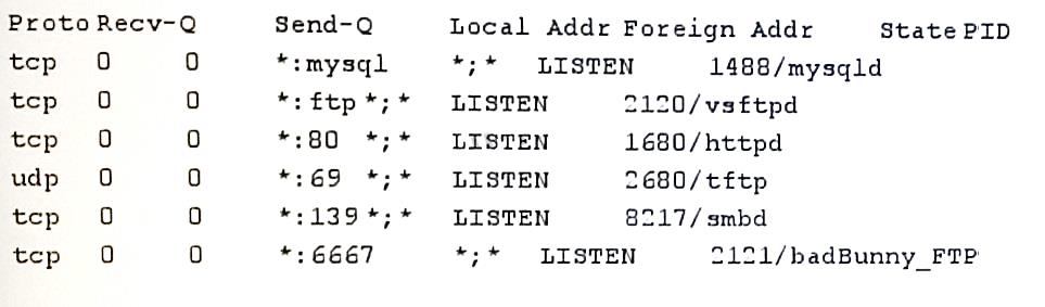 administrator sees the following output from a netstat -1p command: