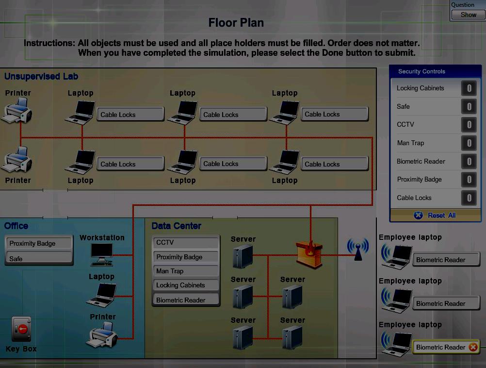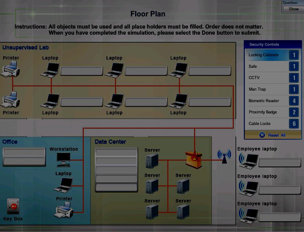Drag and drop the appropriate security controls on the floor plan-Instructions: