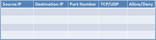 Task: Configure the firewall (fill out the table) to allow these three rules: