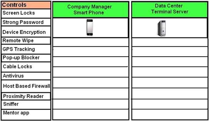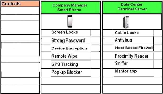 servers located in the data center. Drag and Drop the applicable controls to each asset type.