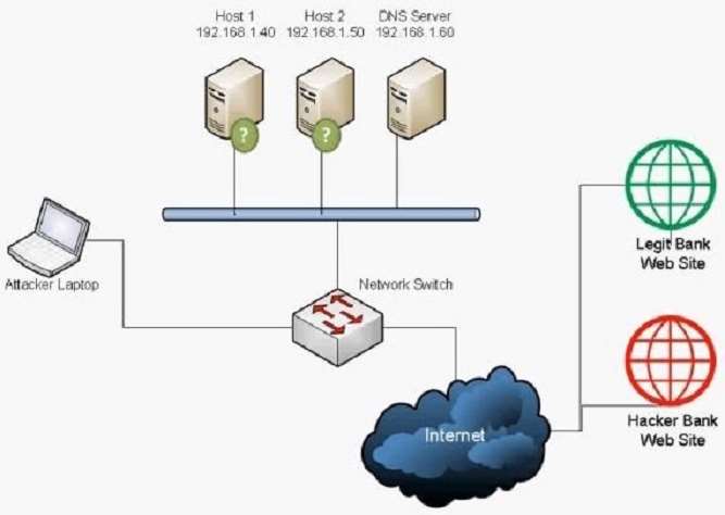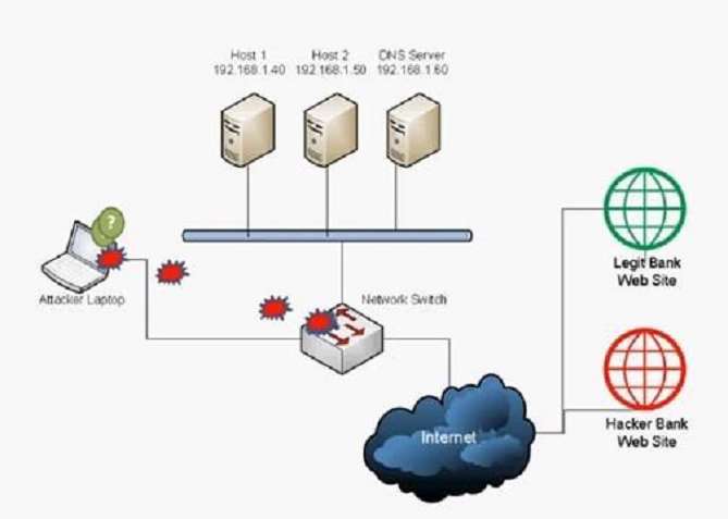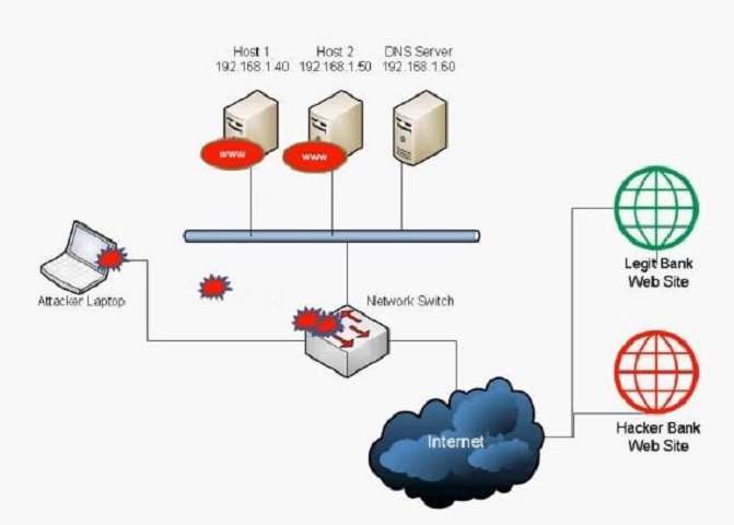The hacker is redirecting bank website users to the hacker bank website instead of the legit bank website. This