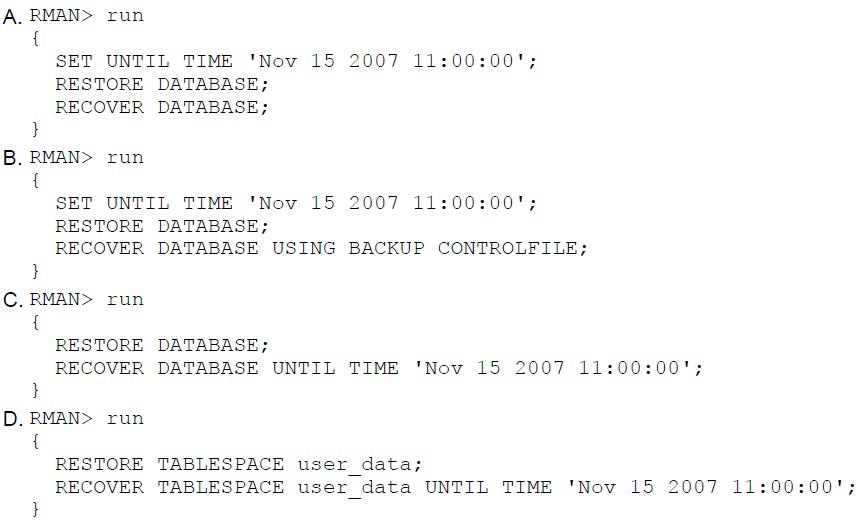recovery catalog. You have been taken database backups every evening. On November 15,