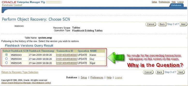 View the exhibit and examine the Flashback Version Query that was executed after the