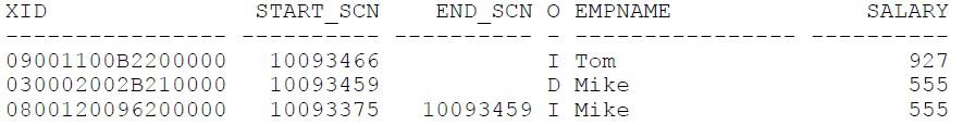 SELECT versions_xid XID, versions_startscn START_SCN,