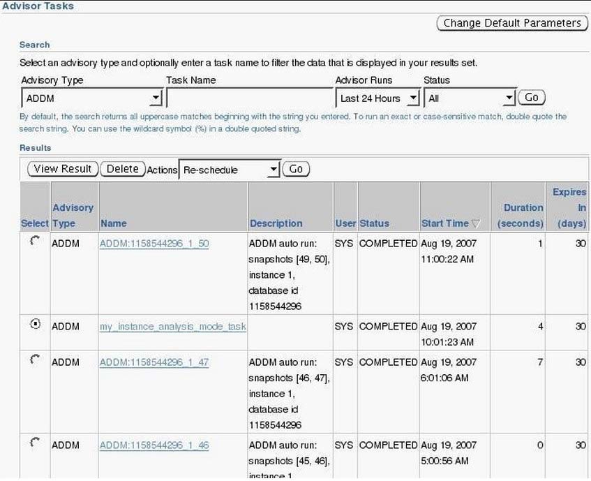 View the Exhibit to examine the Automatic Database Diagnostic Monitor (ADDM) tasks. You