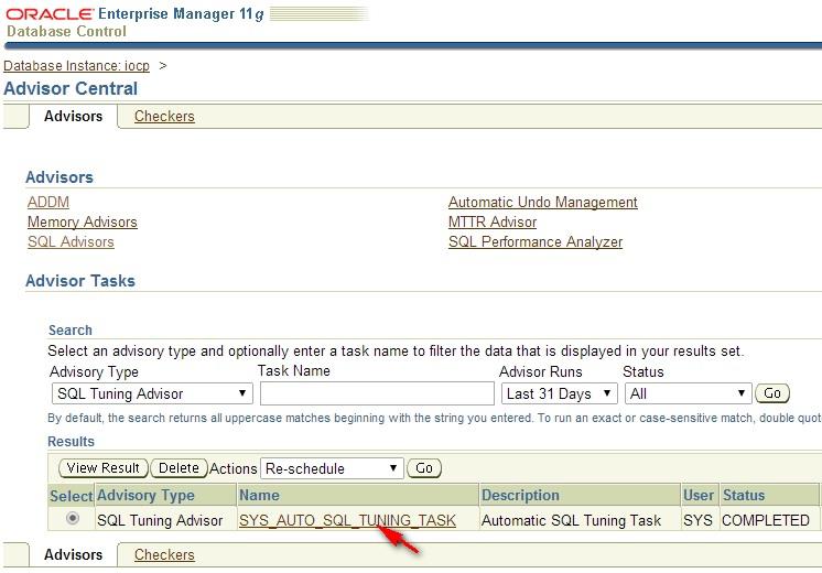 From Advisor Central, choose SQL Advisors, Manual SQL Tuning Advisors, Tuning Task