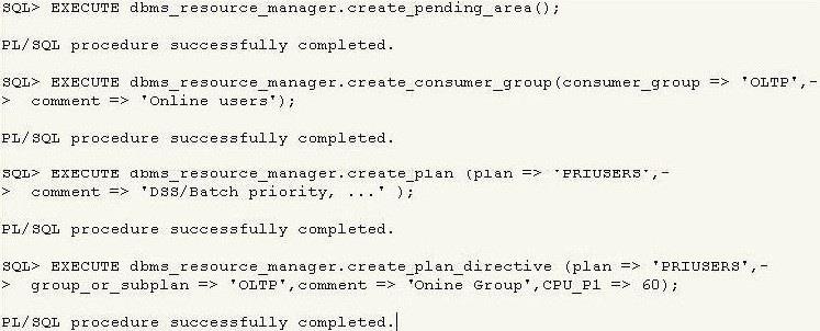 SQL> EXECUTE dbms_resources_manager.validate_pending_area ( );