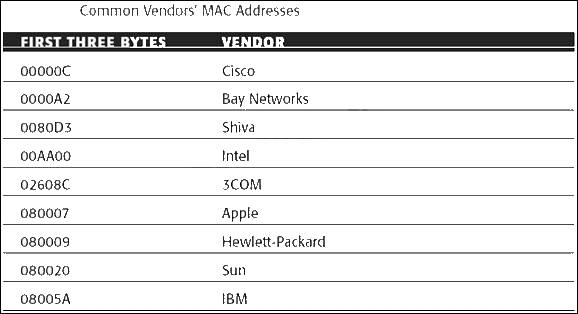 The first three bytes (or first half) of the six-byte MAC address is the manufacturer’s identifier (see