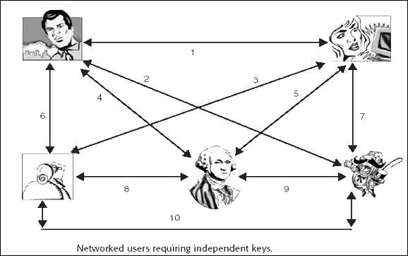 This concept can be illustrated with five users as shown in Figure.Thus, with five users, the number of independent keys is equal to (5 x