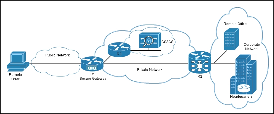between the secure gateway R1 and the Cisco Secure ACS?