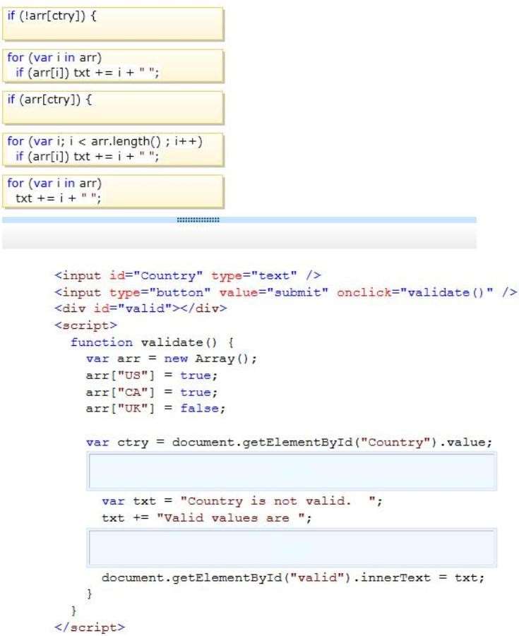 Which code segment or segments should you use? (To answer, drag the appropriate code segment or